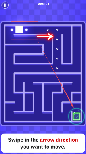 3、开始闯关:于Level-1界面按箭头方向滑动手指移动角色。