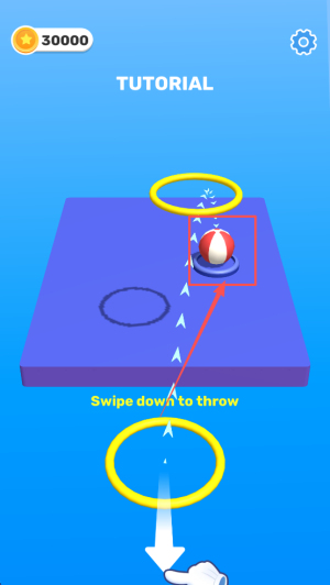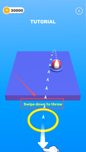 2、进入教程:在30000分界面根据提示“Swipe down to throw”下滑投掷。