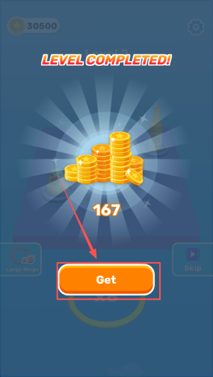 4、通关领奖:出现“LEVEL COMPLETED!”后点击“Get”领取奖励。