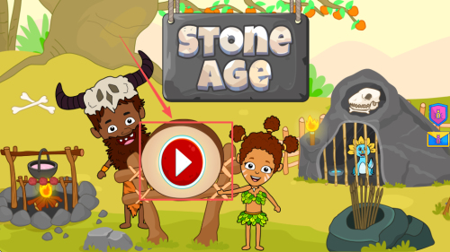 2、进入时代:出现“STONE AGE”界面表示已穿越到原始世界。