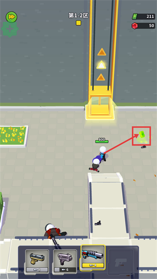 3、战斗中击败敌人后收集【绿色资源】,同时可拾取场景中的新武器,增强后续作战能力。