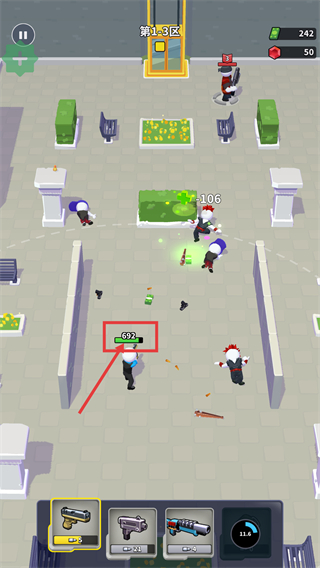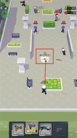 2、在【第1-3区】场景中,拾取【3-爆破手榴弹】道具,可用于范围攻击敌方单位,提升清场效率。