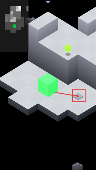 2、操控【绿色方块】移动至【灰色平台】位置,触发场景互动,推进关卡的解谜步骤。