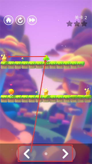 2、在【关卡2】中,操控方向键【←→】移动角色,收集场景内的星星道具,推进关卡进度。