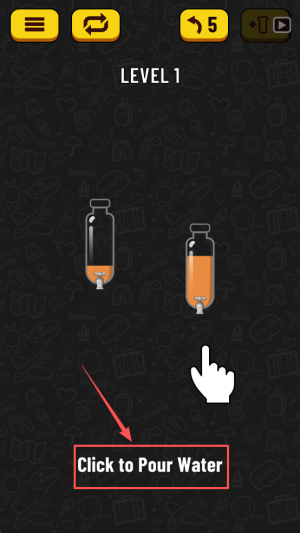 3、点击倒水:按屏幕提示“Click to Pour Water”,将容器水位调整至目标刻度。