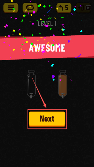 4、继续下一关:出现“AWESOME”通关字样后,点“Next”直接进入下一关挑战。