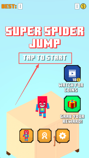 1、进入游戏:打开游戏主界面,点击“SUPER SPUOER JUMP”图标,观看10秒提示后进入关卡。
