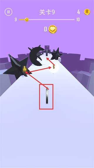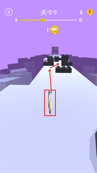 2、进入【关卡9】后,操控硬币避开【黑色星形障碍】,精准拾取沿途金币,同时收集隐藏在障碍旁的道具。