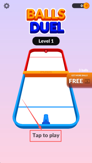 1、进入游戏:打开游戏主界面,点击“Tap to play”进入“BALLS DUEL Level 1”,系统赠送3颗球。