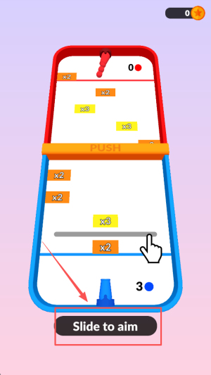 2、滑动瞄准:按住屏幕出现“Slide to aim”提示,调整角度对准x2、x3倍增区后松手发射。