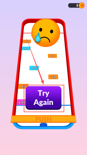 4、重试挑战:结算界面出现“x2 x2 Try x10 Again”,点“Try Again”重新挑战更高倍增。