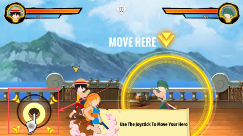 1、移动角色:使用摇杆控制角色移动到指定位置,准备与对手交战。