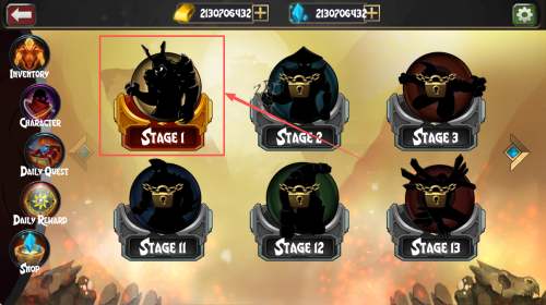 3、选择关卡:在关卡选择界面,点击“STAGE 1”开始你的第一关挑战。