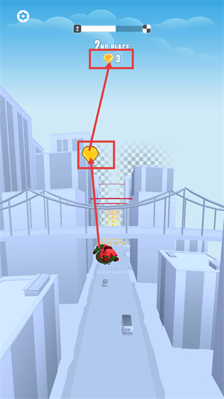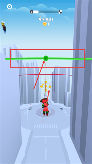 2、借助【绿色横杆-连接点】进行摇摆移动,过程中注意避开障碍,同时关注【4th-PLACE】排名变化。