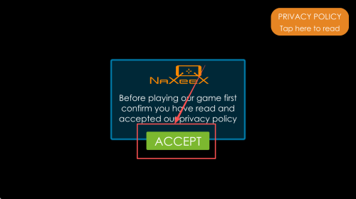 1、接受隐私政策:进入游戏后,阅读并接受隐私政策,点击“ACCEPT”按钮以继续。