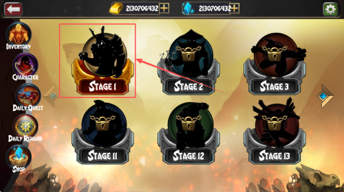 2、选择关卡:在战役模式中,点击“STAGE 1”选择你想要挑战的关卡。