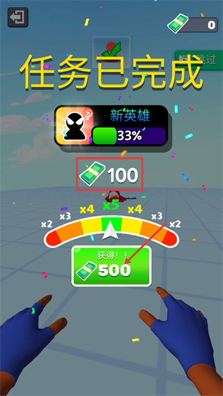 4、任务完成后点击【获得!!】领取【100】及【500】货币奖励,同时解锁新英雄进度至【33%】。