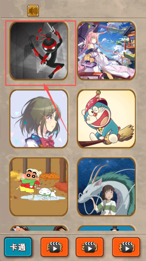 2、选择模式:在主界面点击“卡通”图标,进入卡通风格拼图选择页面。