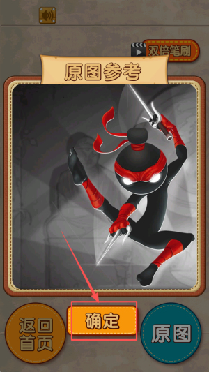 3、开始拼图:选择关卡后点击“原图参考”查看完整图,再点“双倍笔刷”开始拼图挑战。