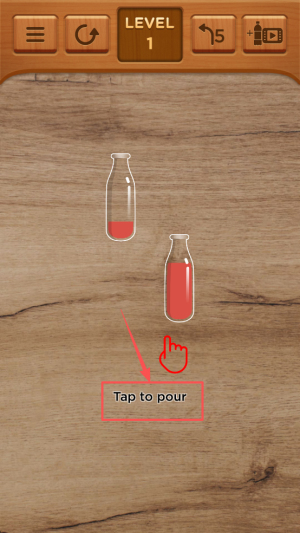 3、开始倒水:根据提示“Tap to pour”,点击屏幕控制水量,将液体倒至目标刻度。