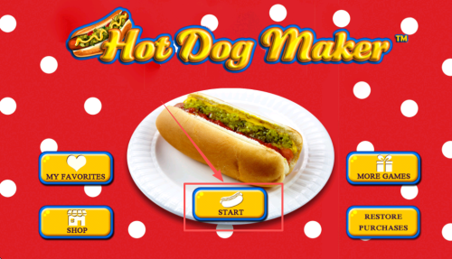 1、进入游戏:打开游戏主界面,点击“START”按钮,进入“HotDog Maker”初始界面。
