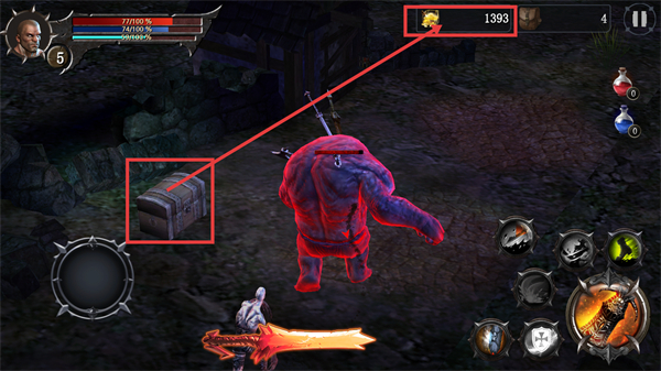 3、遭遇大型敌人时,可利用技能快速输出伤害,同时注意场景中的宝箱,开启后可获得额外奖励。