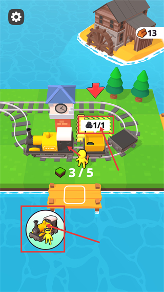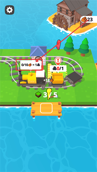 3、将木材资源运输至火车处,满足“10木材=1工人”的兑换条件,解锁工人以提升建设效率。