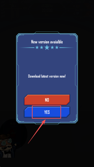 1、进入游戏:打开更新提示框,点击“YES”下载最新版本,等待完成后进入主界面。