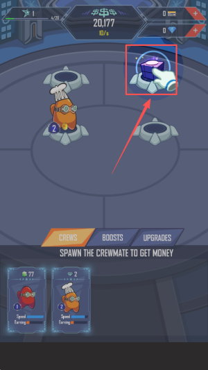 2、选择功能:在主界面点击“SPAWN THE CREWMATE TO GET MONEY”区域,准备生成船员。