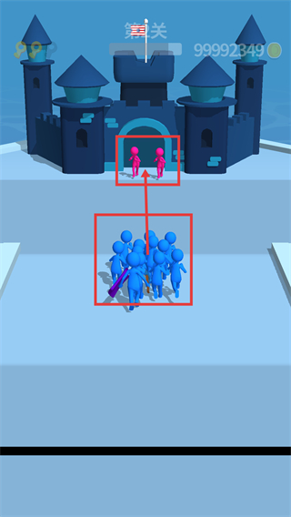 4、关卡终点以城堡为核心目标,抵达后将开启终极战斗,与对手展开激烈比拼,凭借人数优势与操作技巧,在城堡突袭中赢得最终胜利。