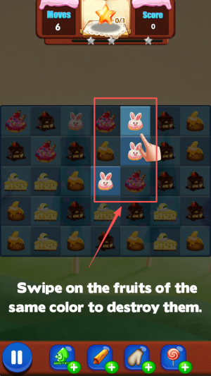 3、开始游戏:进入界面后查看剩余步数5,滑动屏幕连接同色水果完成消除。