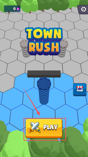 1、进入游戏:点击主界面“TOWN RUSH PLAY”按钮,直接进入第一关。