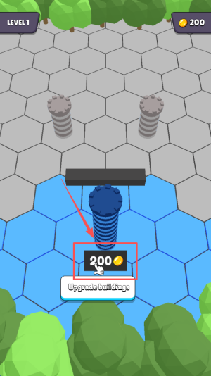 2、升级建筑:在关卡界面点击“Upgrade buildings”,消耗金币提升建筑等级。