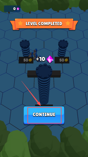 4、完成关卡:当界面弹出“LEVEL COMPLETED”时,点击“CONTINUE”领取奖励并进入下一关。