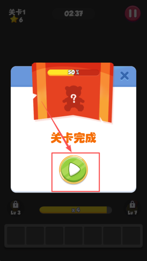 4、完成关卡:当倒计时显示02:37且进度达50%时,等待“关卡完成”提示出现。