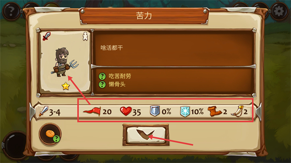 2、查看【苦力】的属性面板,其【3-4】攻击与【35】生命值适合作为基础作战单位。