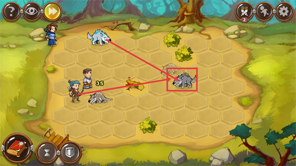 3、在六边形战场中操控我方单位(含召唤物),集火标注的【恶狼】目标以快速削减敌方战力。