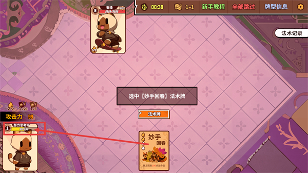 2、战斗中选中【妙手回春】法术牌,可为我方回复【100点生命值】,提升续航能力。