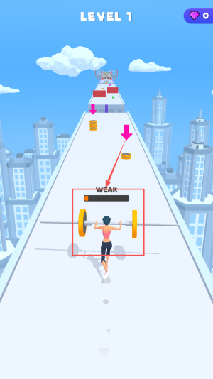 2、挑战层层递进:杠铃重量随进程逐步增加,跑酷难度同步提升,既考验操作实力,又激发突破自我的欲望。