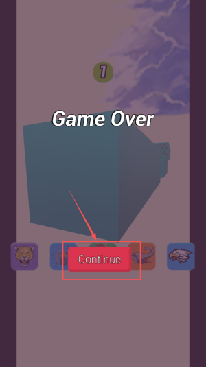 4、继续挑战:当界面显示“Game Over”,点击“Continue”重新挑战。