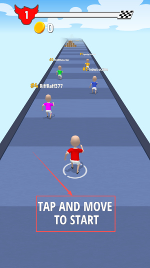 1、进入游戏:点击“TAP AND MOVE TO START”提示,滑动屏幕开始游戏。