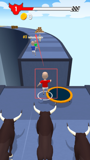 1、聚焦追击逃生+跑酷竞技:核心围绕“赛道奔跑加速、躲避公牛攻击、利用场地道具、超越对手取胜”展开,玩法辨识度鲜明。