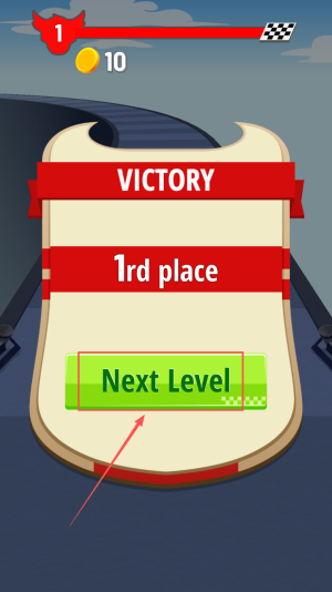 3、完成比赛:当界面显示“10 VICTORY 1rd place”,表示已获得第一名。