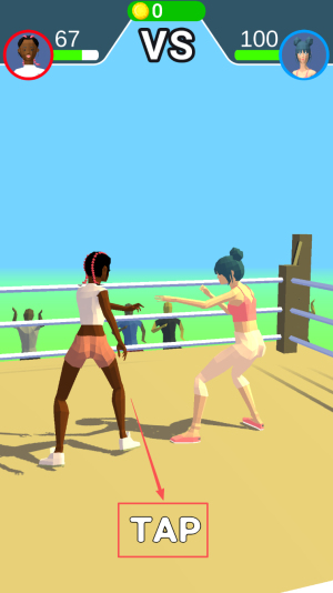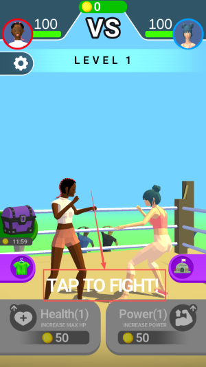 1、进入游戏:点击“TAP TO FIGHT!”按钮,进入LEVEL 1,双方血量均为100。