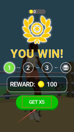 4、领取奖励:当界面弹出“YOU WIN!”时,点击“GET X5”领取100奖励。