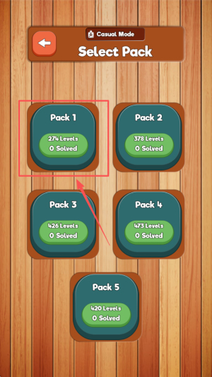 2、选择图包:在图包界面点击“Pack1”,进入274关第一关。
