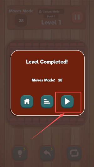4、完成关卡:当界面显示“Level Completed! Moves Made: 28”,表示成功完成第一关。