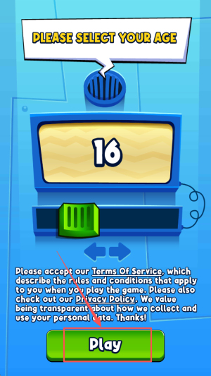 1、进入游戏:选择年龄16并点击“Play”,接受条款正式入场。