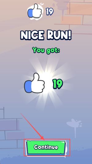 4、领取成绩:当屏幕弹出“NICE RUN! You got:”,点击“Continue”继续挑战。