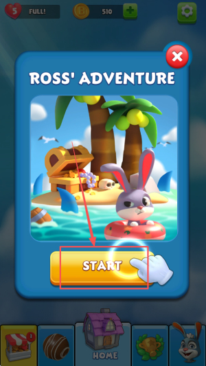 2、开始冒险:在主界面点击“ROSS' ADVENTURE”旁的“START”,正式进入第一关。